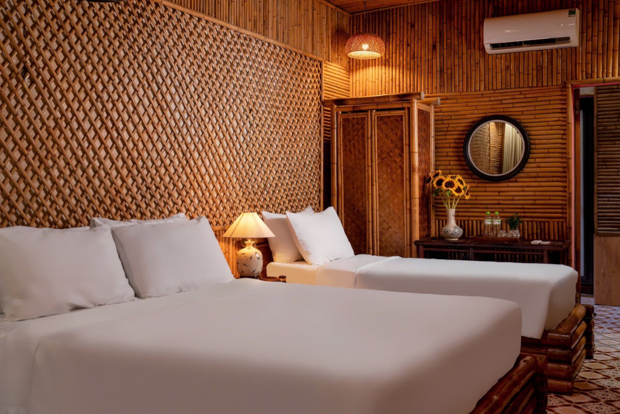 – 01 đêm tại Homestay/ Bungalow/ Khách sạn, ngủ 02 khách/phòng (lẻ ghép ngủ 3)