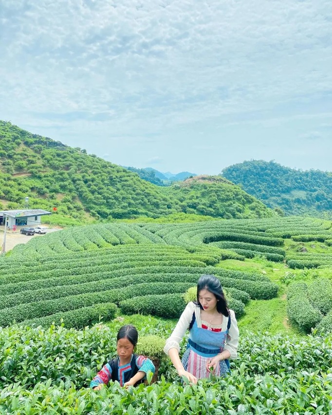 Chiều: Tham quan nông trường chè Mộc Châu, chụp hình tại đồi chè trái tim. Tiếp tục tham quan Thác Dải Yếm và Cầu Kính Tình Yêu 5D (vé tự túc).