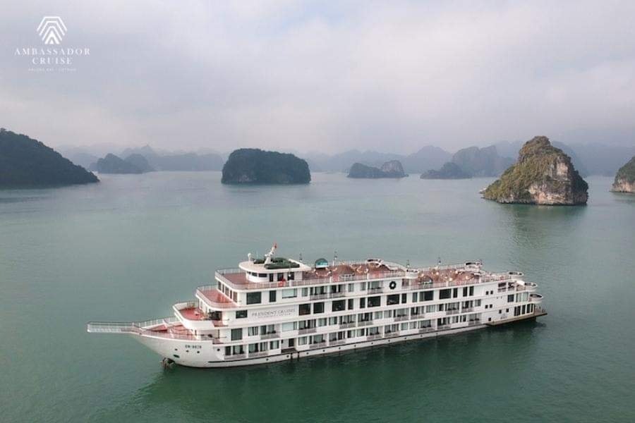 Launched in November 2018, Ambassador Cruise is among the pioneers of 6-star luxury cruising in Ha Long Bay. Known for its outstanding services and the largest swimming pool on the bay, this steel-built vessel features 46 elegantly designed cabins, all with private balconies and panoramic sea views.