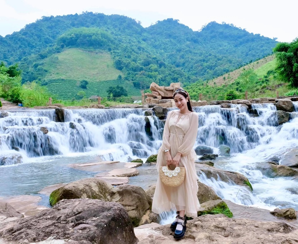 Chiều: Tham quan nông trường chè Mộc Châu, chụp hình tại đồi chè trái tim. Tiếp tục tham quan Thác Dải Yếm và Cầu Kính Tình Yêu 5D (vé tự túc).